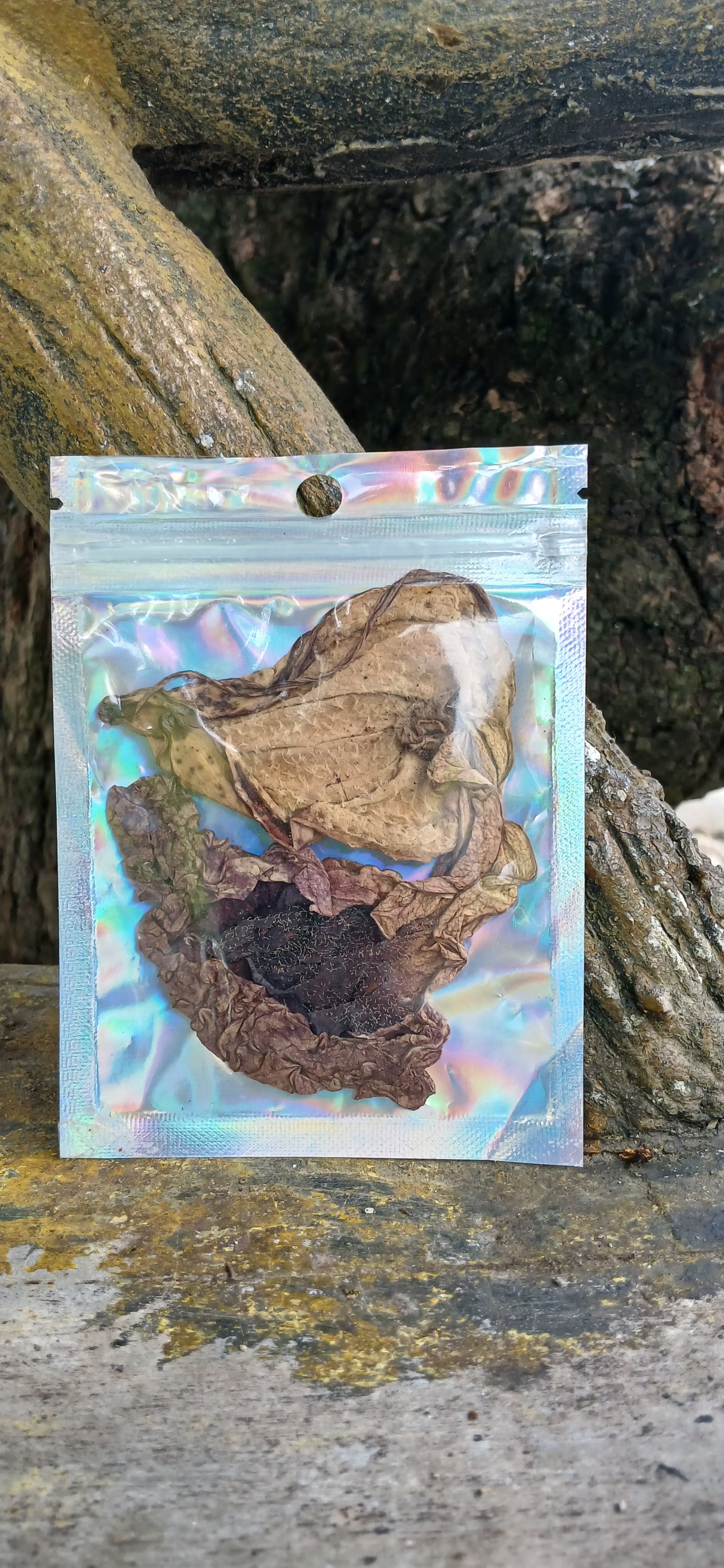 The Duck Flower Detox is one (1) whole dried duck flower Blossom of the vine Aristolochia grandiflora, wild-harvested in the hills of Jamaica. No additives, No fillers, only 100% Pure Duck!